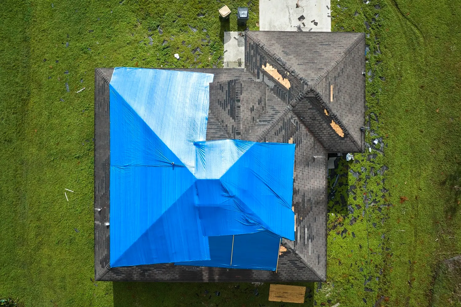 Storm or impact damage: Fallen branches, flying debris, or punctures from hail can leave your roof vulnerable to rapid water intrusion.