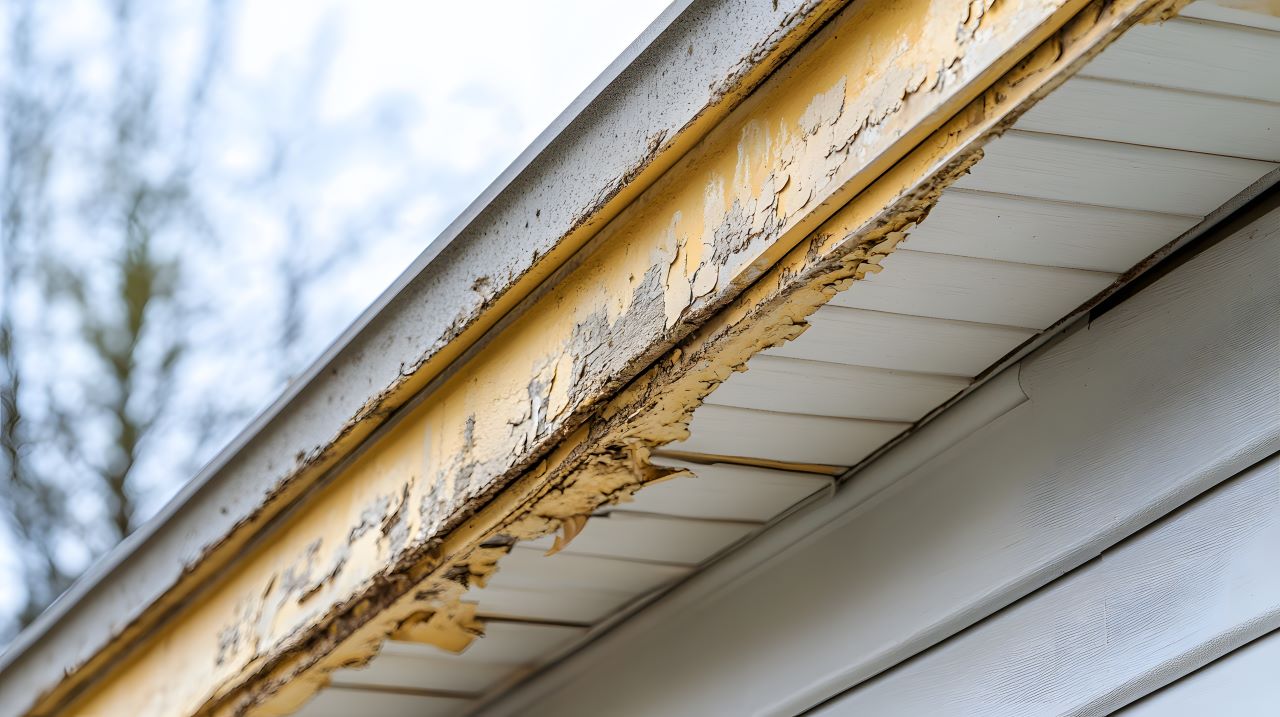 Peeling paint or discoloration: Flaking paint or staining along the eaves may indicate moisture infiltration beneath the surface.
